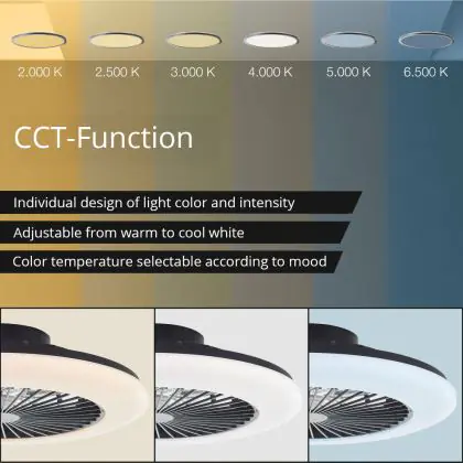 Brilliant Salerno Ceiling Fan Plastic Metal Black 36W 4700lm - 830-865 CCT+RGB | 485mm - Remote Control Dimmable