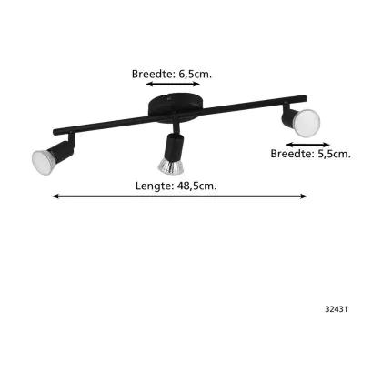 Eglo Ceiling Light Buzz-LED Steel Black 3x2.8W 3x250lm - 830 Warm White | IP20 - Incl. 3x GU10