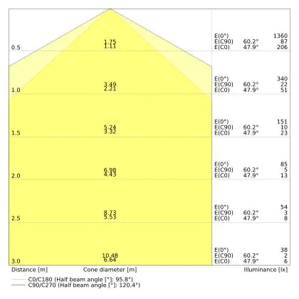 ![]() The colour code is a combination of colour rendering (CRI) and light colour (Kelvin). The first number indicates the colour rendering (1 = very poor colour rendering, 9 = maximum colour fastness). The second and third number contains the light colour. Example: the colour code 830 consists of good colour rendering (8) and warm white light (3000K). |
