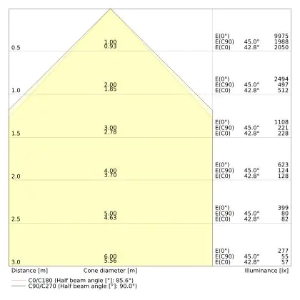 ![]() The colour code is a combination of colour rendering (CRI) and light colour (Kelvin). The first number indicates the colour rendering (1 = very poor colour rendering, 9 = maximum colour fastness). The second and third number contains the light colour. Example: the colour code 830 consists of good colour rendering (8) and warm white light (3000K). |