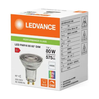Ledvance LED PAR16 GU10 Reflector 7W 575lm 60D - 940 Cool White | Best Colour Rendering - Dimmable - Replaces 80W