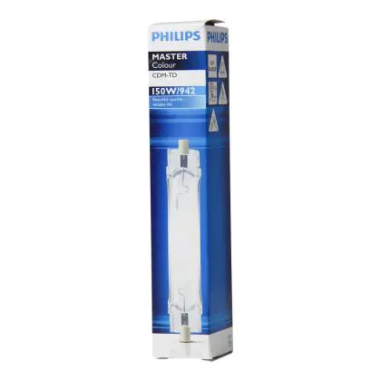 CDM-TD are compact double-ended discharge lamps with a brilliant light and excellent colour stability due to their ceramic burner technology. The Philips CDM-TD 150W 942 RX7s have a RX7S base type, which allows them to fit perfectly in your old fixtures. With an average lifespan of 16000 hours, the Philips CDM-TD 150W 942 RX7s provides energy savings of 30% compared to normal lamps.